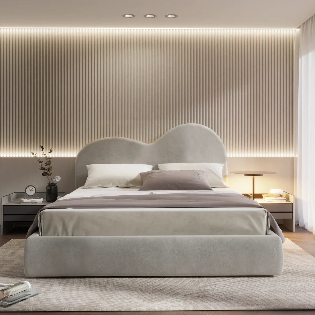 The Dazzle Bed Frame catches the eye with its distinctive headboard, showcasing a unique curved line pattern that brings a modern touch to the bedroom. The plain footboard maintains a clean, balanced look. Designed with both style and practicality in mind, the frame includes an easy-lift storage compartment—ideal for keeping bedding, clothing, or other items neatly tucked away. Offering a sturdy and supportive base, this bed frame combines visual appeal with everyday functionality, making it a smart and stylish choice for any home.